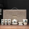 Thangka Jade Sancai Gaiwan Tea Set: High-End Kung Fu Style with Large Hand-Grip Bowl