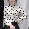 Women's Polka Dot Print Bow Elegant Chic Sweet Button Up Shirt Spring Autumn Casual Long Sleeve Office Ladies Blouse Top Blusas