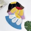 Big head circumference hat literary bucket hat women's color matching knitted flower dome foldable hat sun protection