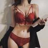 Damski czerwony koronkowy bralet - Styl francuski, marszczony design, bez fiszbin, zapobiegający opadaniu
