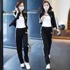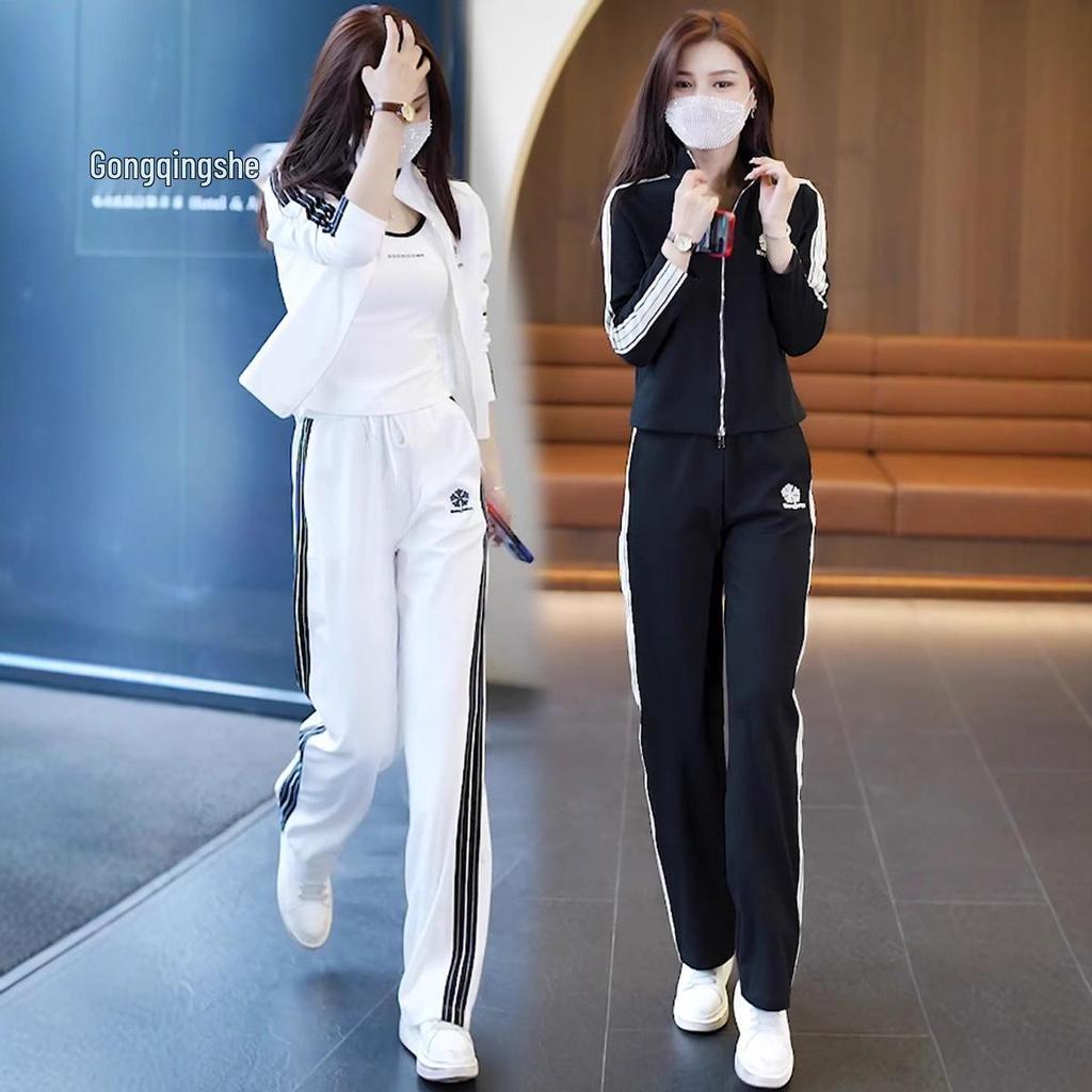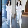 Damski dwuczęściowy strój jesienny 2025 w koreańskim stylu, szykowny: Garnitur: Kurtka ze stójką i spodnie z szerokimi nogawkami