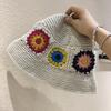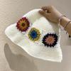 Handmade knitted flower bucket hat women's autumn and winter versatile big head circumference retro washbasin hat niche wool hat