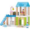 Blue Wooden Dollhouse: Children's Interactive Play Villa with Baby Room Furniture