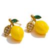 Eetit Modne Żółte Żywiczne Cyrkoniowe Kolczyki Wiszące z Owocem Cytryny dla Kobiet Stal Nierdzewna Nowości Szykowna Biżuteria Hurt