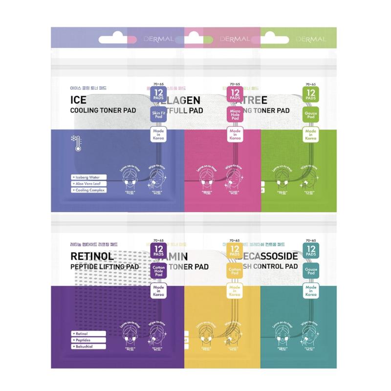 🌈DERMAL Zestaw Próbny Toników w Płatkach 6 Rodzajów 12 Płatków/6 Rodzajów
