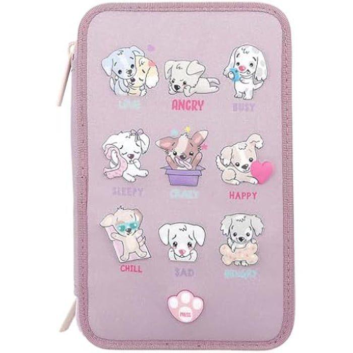 Trousse à Crayons - DEPESCHE - TOPModel 12843 - Violet - 3 Compartiments - LED Chiens