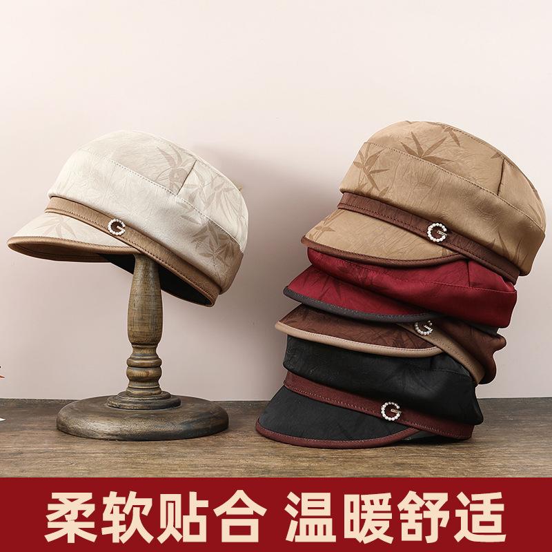 Autumn and winter fashion warm beret women's dark pattern yarmulke old man mother temperament versatile cloth hat