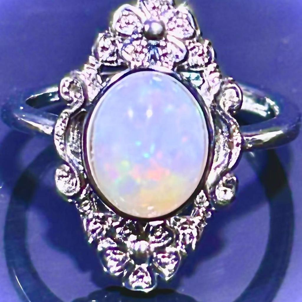 Rainbow Natural Opal Hand-Inlaid Adjustable Embossed Picture Frame Natural Opal Ring