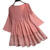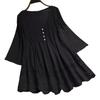 Damskie Bluzki z Bawełny i Lnu Modne Koronkowe Ażurowe Koszule z Dekoltem w Serek Panie Retro Rękaw 3/4 Luźne Codzienne Bluzki Plus Size
