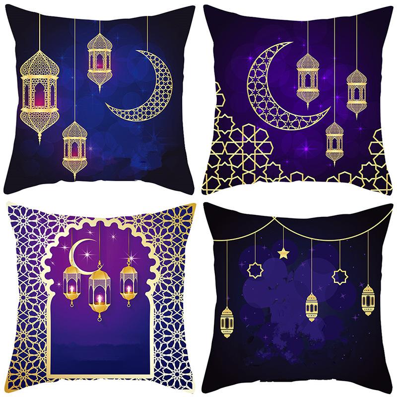New Sofa Pillow Festive Decoration Pillow Case Short Plush Moon Print Pillow Car Back Seat Pillow