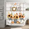 MERCHR Zasłona prysznicowa w kratę Buffalo Check 72 x 72 cale, Zasłona prysznicowa w stylu rustykalnym z drewnianymi deskami, Rustykalna zasłona łazienkowa Home Sweet Home z kwiatami, Poliester