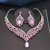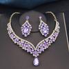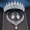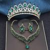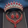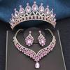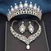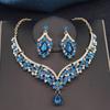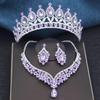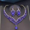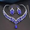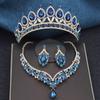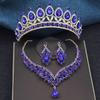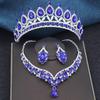 Wspaniałe Królewsko Niebieskie Kryształowe Zestawy Biżuterii Ślubnej Kolorowe Tiary Kolczyki Naszyjniki Zestaw dla Kobiet Suknia Ślubna Korona Zestaw Biżuterii