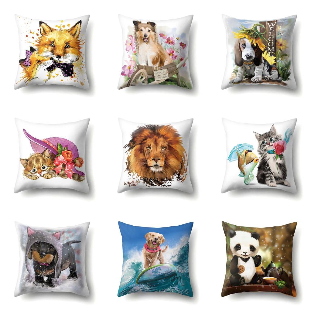 Oil Painting Animal Single-sided Polyester Pillowcase Home Living Room Soft Decoration Sofa Cushion Cover Bedroom Bed Pillowcase