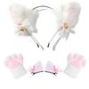 1 Zestaw Urocze Kocie Uszy Ozdoba do Włosów Pazur Rękawiczki Dziewczynki Anime Cosplay Kostium Pluszowy Dzwoneczek Kocie Futro Uszy Opaska do Włosów Nocna Impreza Klub Opaski do Włosów