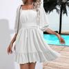 Letnie sukienki damskie kwadratowy kołnierzyk artystyczne RAFLE w pasie powyżej kolana Mini sukienka pół rękawy sweter Mujer Vestidos