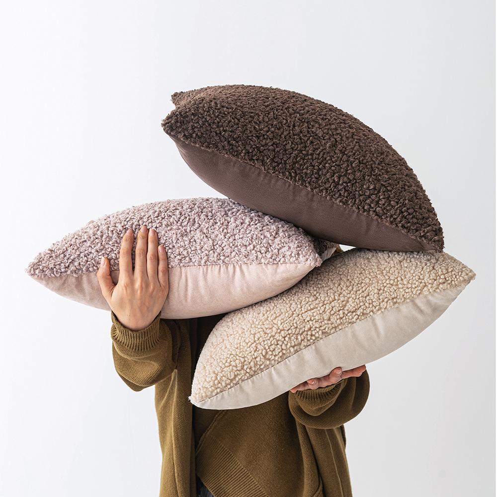 Ins Style Lamb Velvet Pillow Solid Color Curly Pillow Case Simple Sofa Cushion Pillow Office Waist Pillow Case