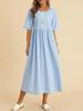 Women Loose Cotton Hemp Dress Large Size Medium Length Round Neck Half Sleeve