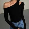Czarna seksowna koszulka damska z odkrytym ramieniem, jesienna, uniwersalna, z długim rękawem, dopasowany top wewnętrzny bez ramiączek, z dekoltem 1863