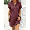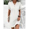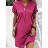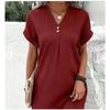 Elevate your style with this elegant women's dress crafted from soft and breathable polyester fabric. The simple yet chic solid color design exudes sophistication and fashion-forward flair. Featuring a flattering V-neckline, loose cut, and button decoration, this dress effortlessly enhances your silhouette for a slim and trendy look.