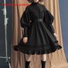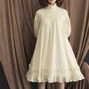 Women's loose standing lace long sleeve button cos clothing solid color sweet lantern sleeve knee-length dress