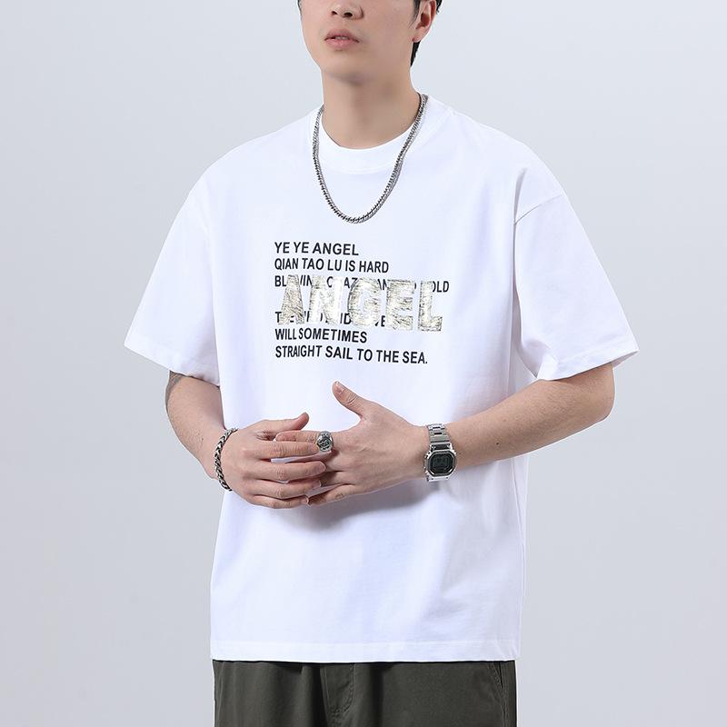 New American High-density Knitted Loose-print Men's T-shirt Short-sleeved
