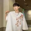 Men's Oversized T-shirts Mens Cotton T Shirt White 5XL Casual Summer Wear Fashion Bamboo Print Tee Shirts for Men Clothing