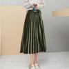 Qooth Women's Autumn Winter Velvet Pleated Skirts Calf Length Elegant A Line Skirt QT2587