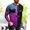 Modny Wzór Europejski T-shirt z Długim Rękawem Dla Mężczyzn Casualowy Jesienny Trend Top Okrągły Dekolt T-shirt Odzież