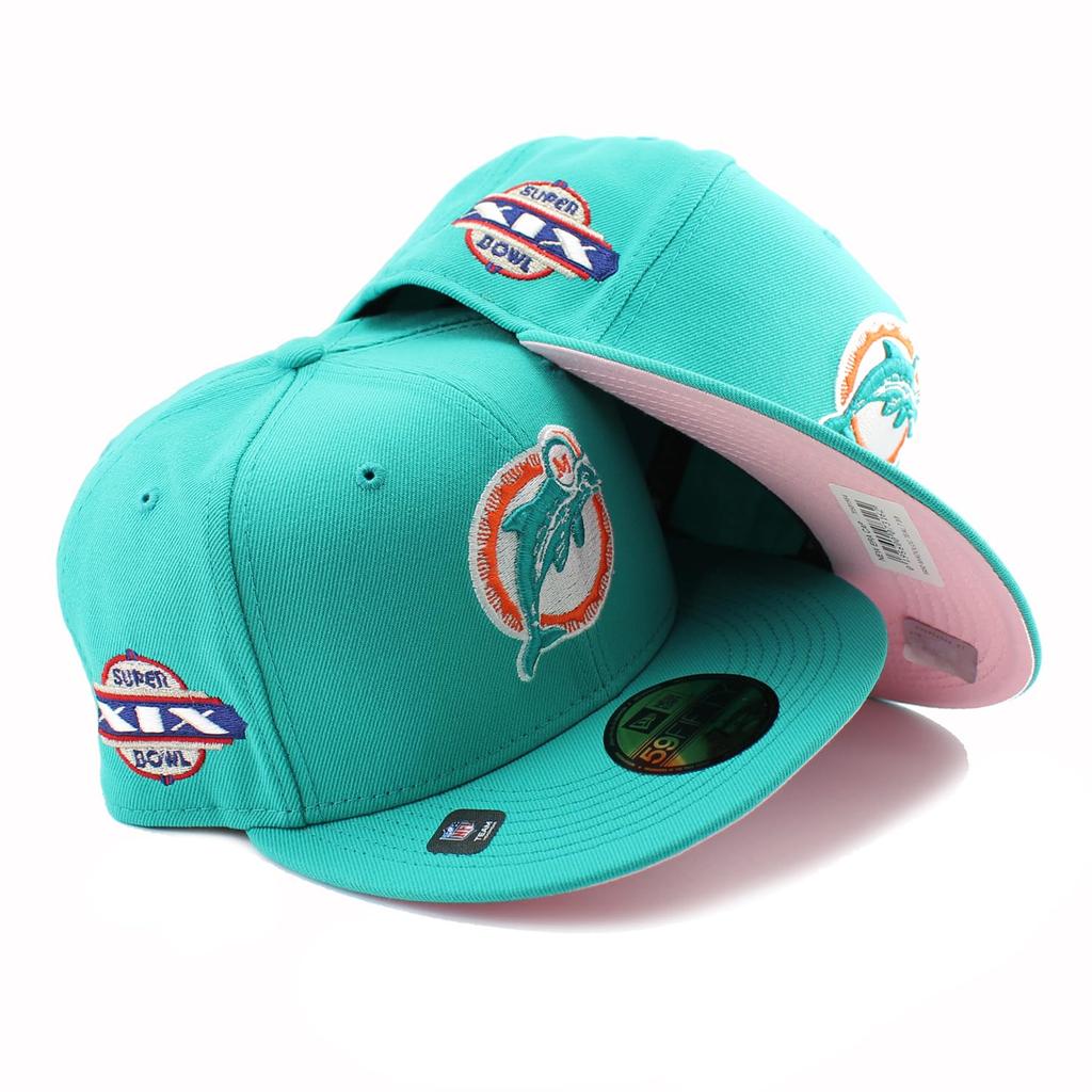[New Era] Cap 59FIFTY Miami Dolphins NFL SUPER BOWL XIX PINK BOTTOM FITTED CAP TEAL MIAMI DOLPHINS Super Bowl Hat 5950 758 [Used]