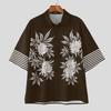 INCERUN Oversized Men Lapel Short Sleeve Floral Striped Casual Loose Shirts