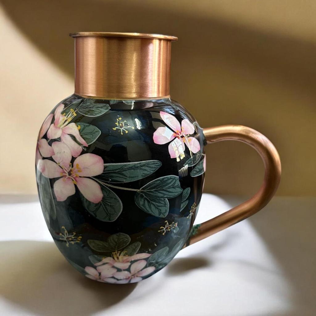 Kwiatowa Obfitość Królewski Wzór Surai Miedziany Dzbanek do Picia, Przechowywania i Serwowania Wody, (1,5 litra) (Kwiat Balck)