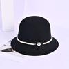 Premium celebrity style dome woolen top hat pearl flower big eaves hat children