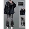 Amerykańska Moda Kratkowana Klapa Dżinsowa Kurtka i Męskie Retro Jeansowe Dwuczęściowy Garnitur