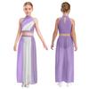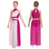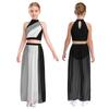 Kostium do tańca lirycznego dla dziewczynek bez rękawów, blok kolorów, marszczony przód, wycięcie na plecach w kształcie łezki, krótki top ze spódnicą szyfonową z rozcięciem