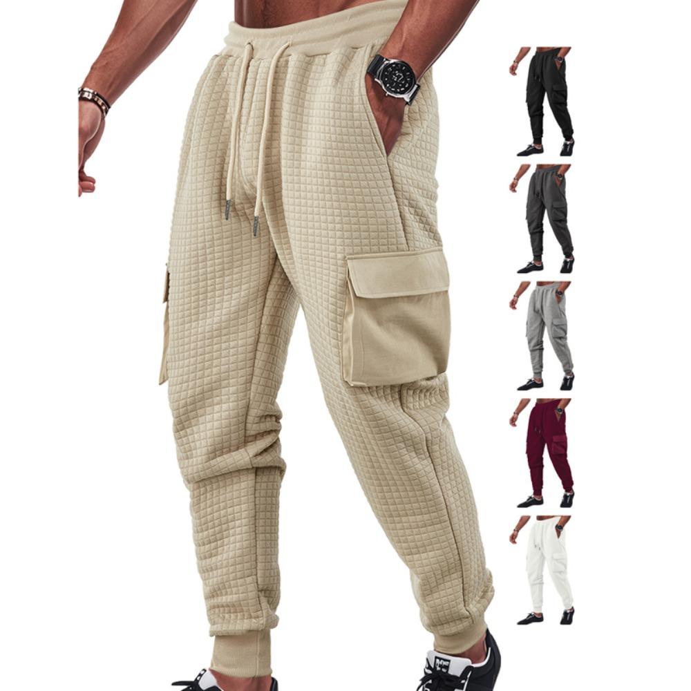 New Men's Sports Thick Multi Pocket Jacquard Small Square Casual Work Pants Men Clothing Streetwear Men Cargo Pants