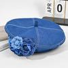 Kapelusz retro damski letni trójwymiarowy kwiat dżinsowy beret pokazujący twarz mała kamelia kapelusz malarza