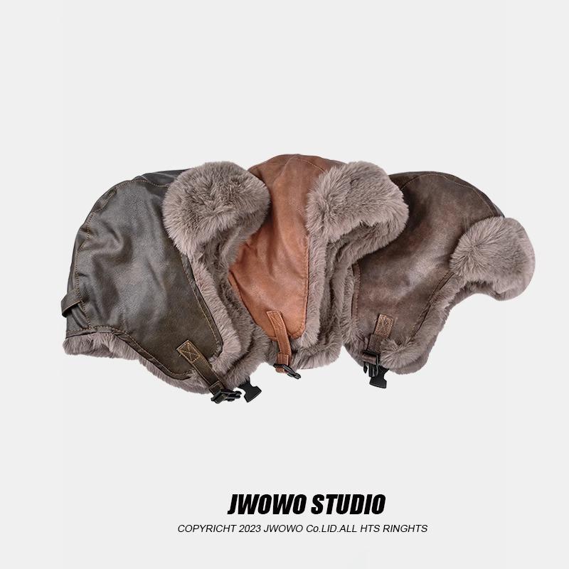 Autumn and winter hats women's leather plush winter warm outdoor cold thickened ear hats men
