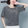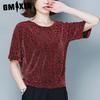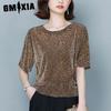 GMXIA Damska Moda Casual Bluzki i Koszule z Krótkim Rękawem z Okrągłym Dekoltem w Panterkę