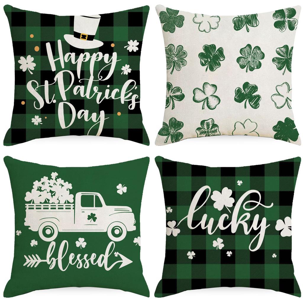 San Pa Poszewka Zielona Koniczyna Len Drukowany Sofa Dekoracyjna Poszewka na Poduszkę