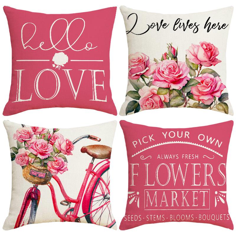 Spring Flowers Pillow Case Line Print Home Ambient Cushion Pillow Case
