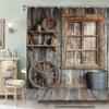 Dekoracja Drzwi Farmhouse Zasłona Prysznicowa do Łazienki Motyw Western Country Rustykalne Drewniane Drzwi Stodoły Vintage Wiejskie Zestaw Zasłon Łazienkowych
