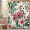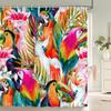 Bohemska Zasłona Prysznicowa Tropikalna Dżungla Dzikie Zwierzęta Zestaw Łazienkowy Nowoczesny Różowy Estetyczny Papuga Kwiatowy Zasłona Łazienkowa z Haczykami