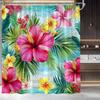 Zasłona prysznicowa z liści palmowych, białych kwiatów i niebieskich liści, dekoracyjna zasłona prysznicowa do łazienki, wodoodporna zasłona prysznicowa z haczykami