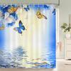 Butterfly Waterfall Floral Shower Curtain, Bathroom Decorative Shower Curtain, Waterproof Shower Curtain with Hooks