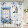 Blue White Daisy Butterfly Wood Panel Quote Shower Curtain, Bathroom Decorative Shower Curtain, Waterproof Shower Curtain with H