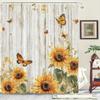Szklana Butelka Słonecznik Motyl Drewniany Panel Zasłona Prysznicowa, Dekoracyjna Zasłona Prysznicowa do Łazienki, Wodoodporna Zasłona Prysznicowa z