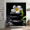 Zen Biały Storczyk Motylkowy Czarny Kamień Zasłona Prysznicowa, Dekoracyjna Zasłona Prysznicowa do Łazienki, Wodoodporna Zasłona Prysznicowa z Haczykami