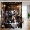 Mały Słoń Wanna Kaczka Żółta Zasłona Prysznicowa z Bubelkami, Dekoracyjna Zasłona Prysznicowa do Łazienki, Wodoodporna Zasłona Prysznicowa z H