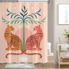Boho Gepard Zasłona Prysznicowa, Tropikalny Leopard Dzikie Zwierzęta Zasłona Kąpielowa, Nowoczesna Różowa Estetyczna Faza Księżyca Niebieska Kwiatowa Zasłona Łazienkowa