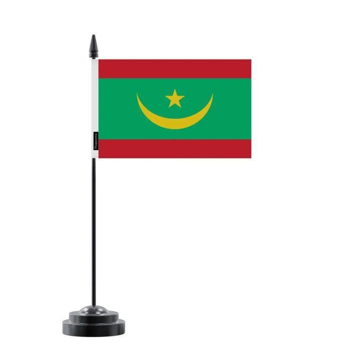 Drapeau de Table de la Mauritanie – 14 x 21 cm – Polyester – Socle en Plastique Noir – Pixelforma